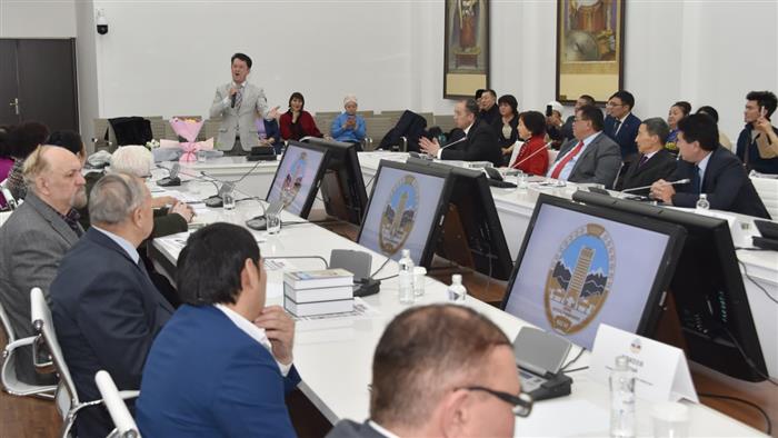 С приветственным словом выступил руководитель вуза Жансеит Туймебаев, остановившись на самых значимых вехах жизненного пути Шомишбая Нагашыбаевича.