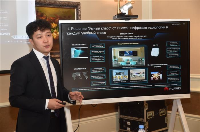 Руководитель вуза отметил, что КазНУ нацелен развивать и укреплять партнерство с Huawei и озвучил следующие предложения: открыть третье направление в рамках ИКТ Competition – Innovation Competition, чтобы студенты могли представлять свои собственные инновационные проекты с использованием технологий Huawei на международном уровне; организовать образовательный хаб Talent Hub на базе КазНУ; обеспечить поставку дополнительного бесплатного оборудования по различным направлениям, таким как беспроводные сети, интернет вещей, системы хранения данных, облачные вычисления, машинное обучение, 5G оборудование и искусственный интеллект; организовать бесплатное развертывание демонстрационной кампусной сети умного университета на базе КазНУ имени Аль-Фараби.