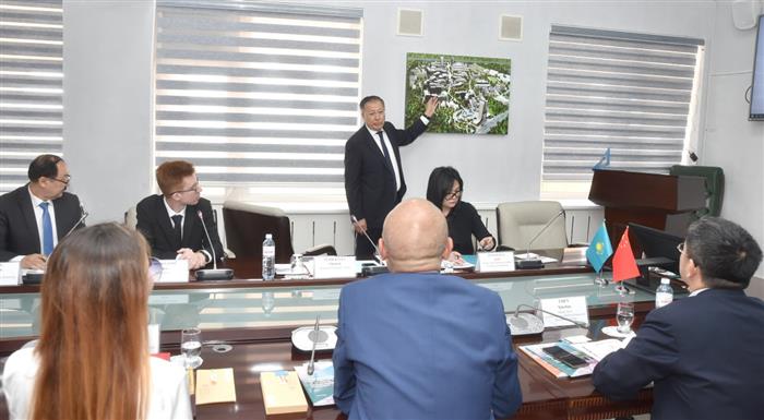 Гостей принял Председатель Правления – Ректор КазНУ имени Аль-Фараби Жансеит Туймебаев, который рассказал о деятельности университета и его сотрудничестве с вузами, институтами КНР в различных областях.