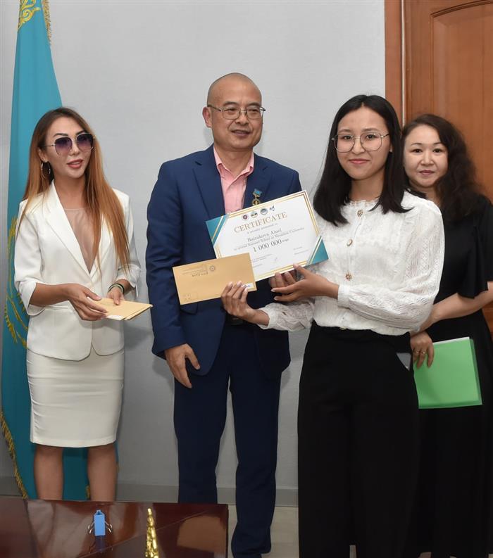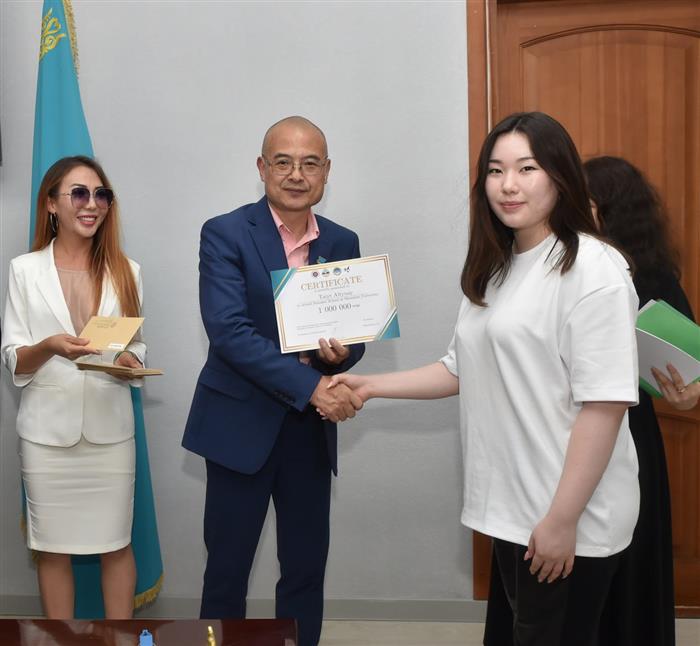 В завершение встречи представители делегации КНР в торжественной обстановке вручили 21 студенту КазНУ стипендии для прохождения практики в рамках программы летней школы в Медицинской школе Шэньжэньского университета.