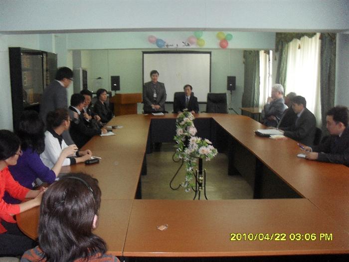 В четверг, 22 апреля на факультете востоковедения прошла встреча делегации Шанхайской Академии Общественных Наук с преподавателями кафедры китаеведения. Делегация во главе с профессором Юй Цзянхуа более подробно ознакомила с деятельностью ШАОН. В свою очередь кафедра китаеведения также ознакомила делегацию с направлениями кафедры. Стороны обменялись мнениями, обсудили некоторые проблемы, касающиеся двустороннего сотрудничества, в особенности об укреплении двусторонних научных связей, об обмене студентов и преподавателей на различные курсы китайского языка.