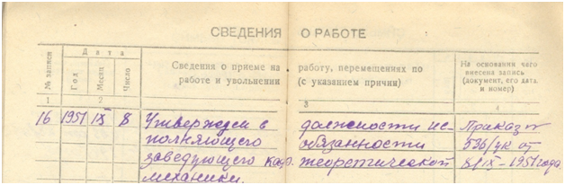 К сентябрю 1951 года кафедра теоретической механики опять существовала самостоятельно и обязанности заведующего кафедрой также исполнял И.Молюков.