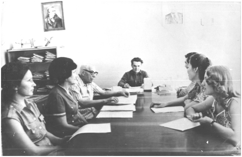 В первом ряду в центре Л.А.Вулис. Во втором ряду слева направо: