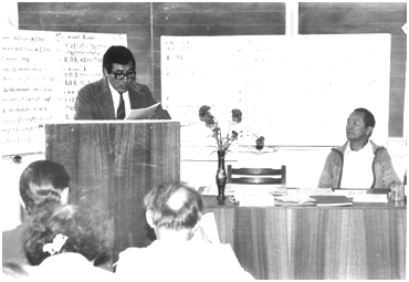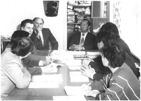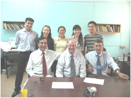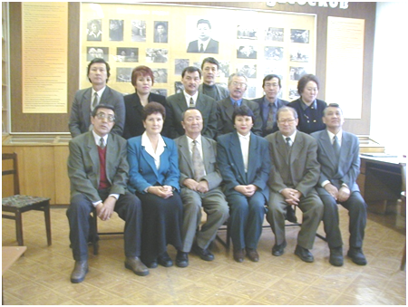 Стоят: Р.Г.Бородихин, Л.Ф.Нестерова, М.Н.Сагитов, Г.У.Уалиев, А.Т.Садыкова, К.Сарбасов.