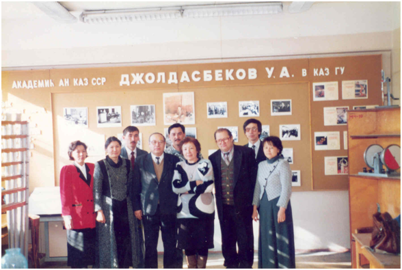 ученых (Уалиев Г.У., Рахимов Е.Р., Иванов К.С., Молдабеков М.М., Байгунчеков Ж.Ж., Дракунов Ю., Шерьязданов Г.Б., Арышев Ю., Пак В.В., Жапбасбаев У.К., Искакбаев А.И., Калтаев А., Балакаева Г.Т., Найманова А.Ж., Тулешов А.К. и др.). В итоге огромной научно-организационной работы, проведенной академиком У.А.Джолдасбековым, КазГУ стал местом стажировки и подготовки научно-педагогических кадров по теории механизмов и машин для всего бывшего СССР. В КазГУ прошли апробацию и/или защитили кандидатские и докторские диссертации более трехсот ученых из Москвы, Ленинграда, Украины, Молдовы, Грузии, Армении, Азербайджана, Узбекистана, Киргизии и азиатской части России. Сам академик У.А.Джолдасбеков подготовил 25 докторов наук и более 80 кандидатов наук, в том числе и для указанных выше республик СССР и зарубежных стран.