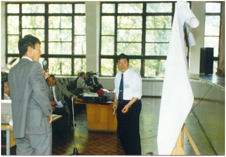 Проф. Т.Такено из Университета Нагоя Японии выступает на Международной конференции «Современные проблемы механики», 2001.