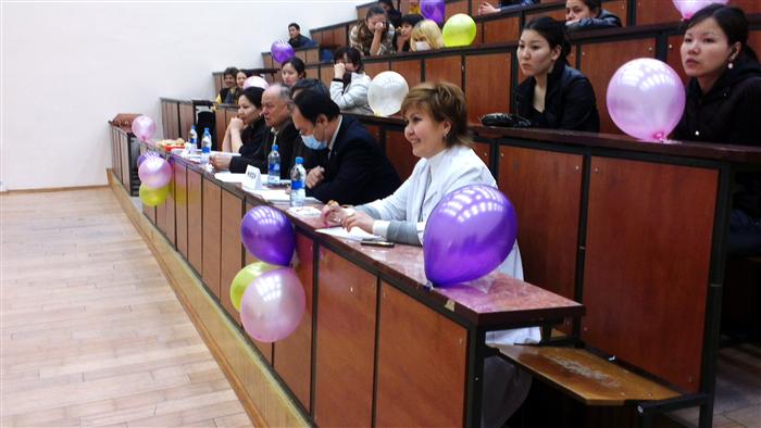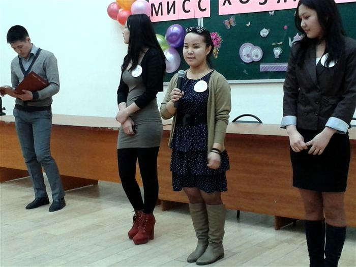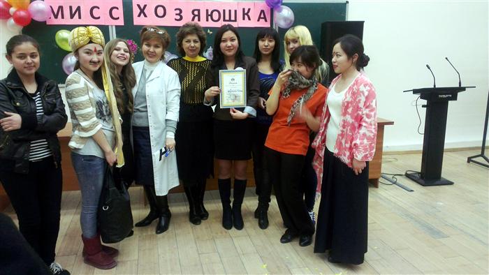 Весенние праздники на факультете биологии и биотехнологии!!! 13 марта 2013 года в лекционном зале №2 ГУК 6, в 16.30 студенты специальности «биология» ББ-206р и ББ-207р (куратор- эдвайзер и.о.профессора кафедры биоразнообразия и биоресурсов Назарбекова С.Т.) организовали и провели конкурс «МИСС ХОЗЯЮШКА» среди студентов 1 и 2 курсов специальностей «биология» и «биотехнология». Компетентное жюри, в составе проф. Мухитдинова Н.М., проф. Тулеуханов С.Т., проф. Заядан Б.К. и куратор от ДВР Алиева А., выявило трех победительниц данного конкурса: 1 место – Жарылқасын Толғанай (ст-ка 1 к., БТ 12-08Р), 2 место – Кұли Жансая (ст-ка 1 к., БТ12-09Р) и Шәріпбай Фаризан (ст-ка 21 к., ББ207-Р). Праздник удался! Студенты подготовили и музыкальные номера, что несомненно украсили данное мероприятие.