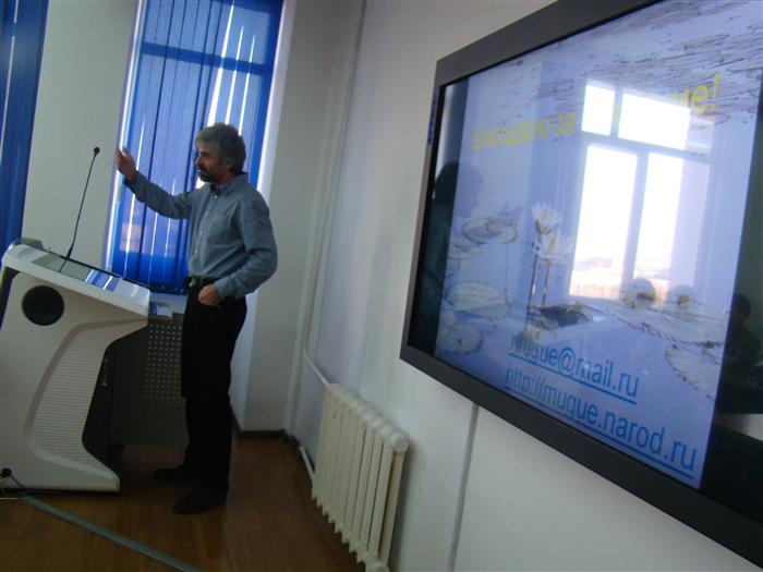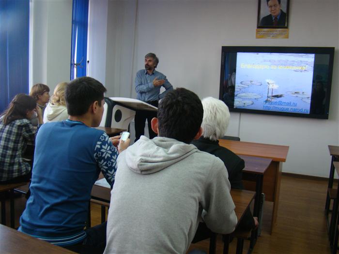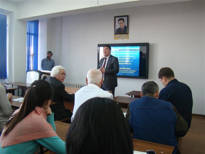 15 ноября 2013 года в 15-00 в 535 аудитории кафедры биоразнообразия и биоресурсов факультета биологии и биотехнологии состоялся семинар на тему "Генетические исследования в зоологии". Докладчик Мюге Николай Сергеевич, к.н.б., заведующий лабораторией молекулярной генетики ФГУП "Всероссийский научно-исследовательский институт рыбного хозяйства иокеанографии", г.Москва. Семинар был проведен в рамках договора с ТОО Научно Исследовательский Институт Рыбного Хозяйства, ответственный за организацию модератор кафедрыбиоразнообразия и биоресурсов и.о.доцента Шалгимбаева С.М.