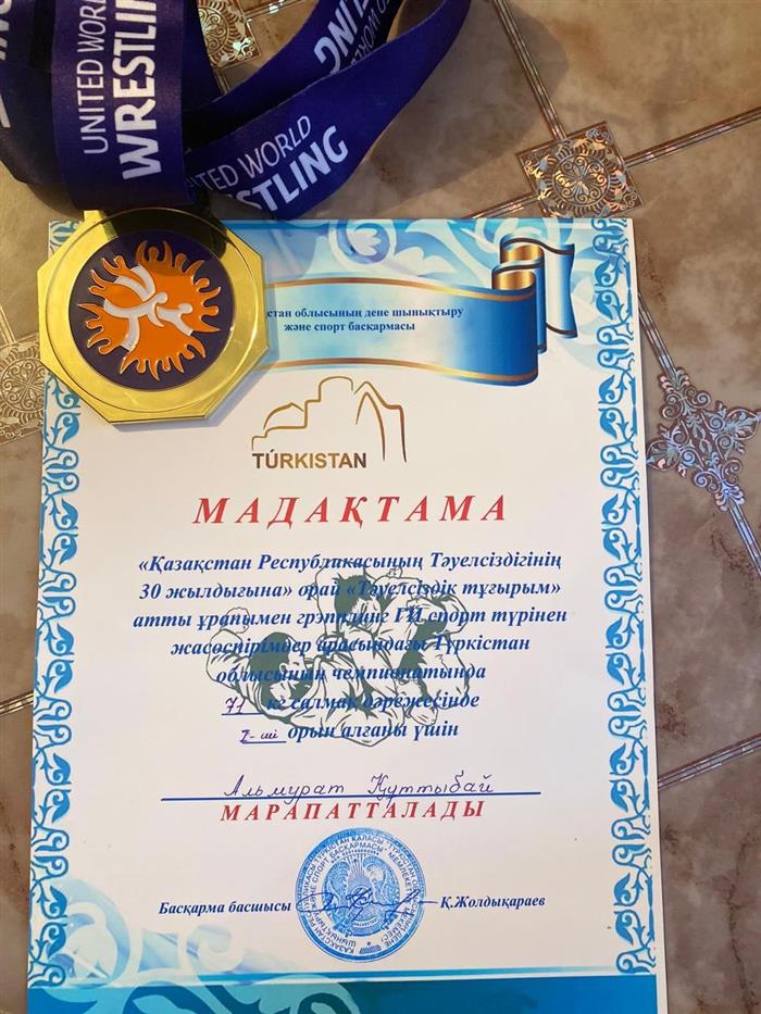 Управление физической культуры и спорта Акмолинской области Кубок РК по ГРЭППЛИНГУ Альмурат Куттыбай 3 место 208 группа |