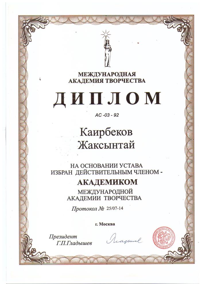 Ведущий профессор нашей кафедры Жаксынтай Каирбекович Каирбеков избран академиком международной творческой академии, за личный вклад в развитие науки. Поздравляем с этим значимым творческим достижением и желаем дальнейших успехов в науке! |
