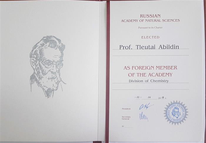Доцент кафедры, доктор химических наук Абильдин Тулеат Сарсембаевич был избран иностранным членом Российской академии естественных наук по направлению «Химия». |