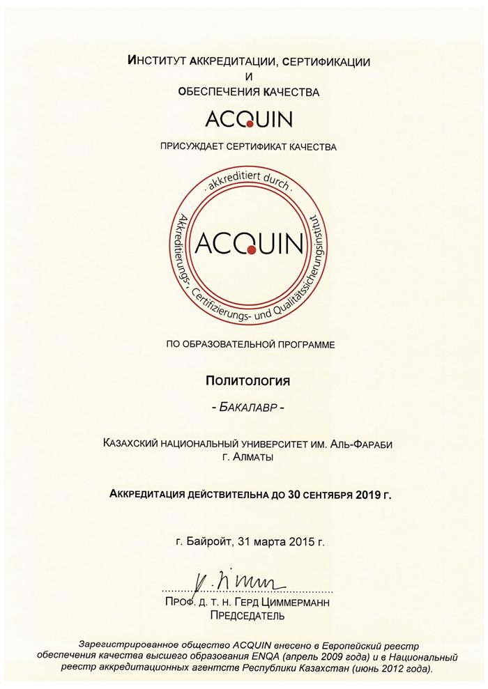 Институт сертификации и качества ACQUIN присудил сертификат качества по программе ПОЛИТОЛОГИЯ БАКАЛАВР |