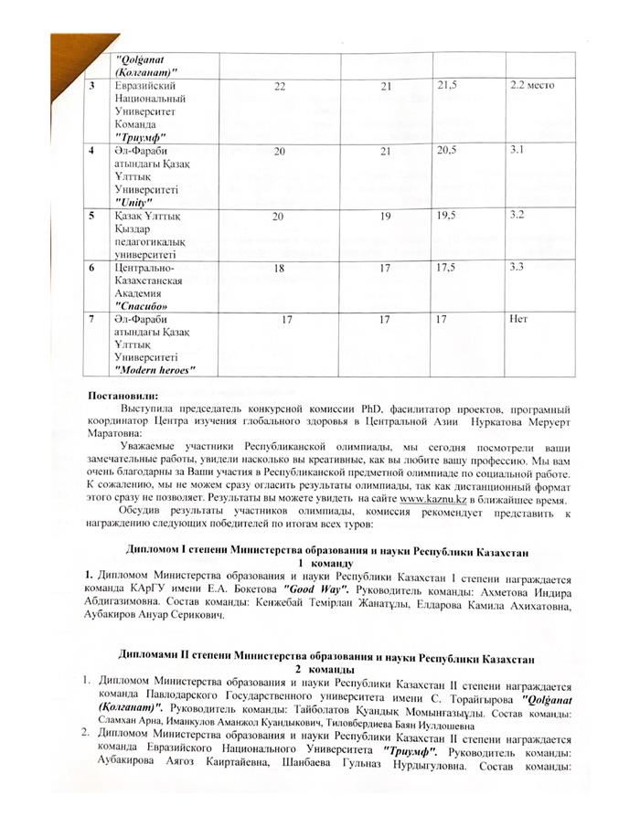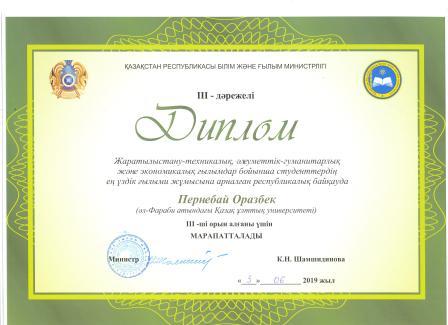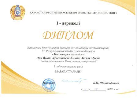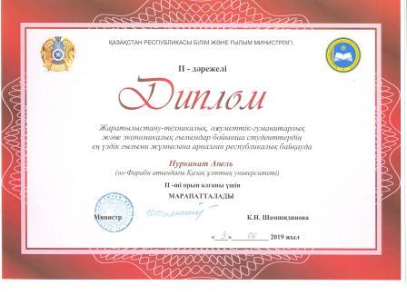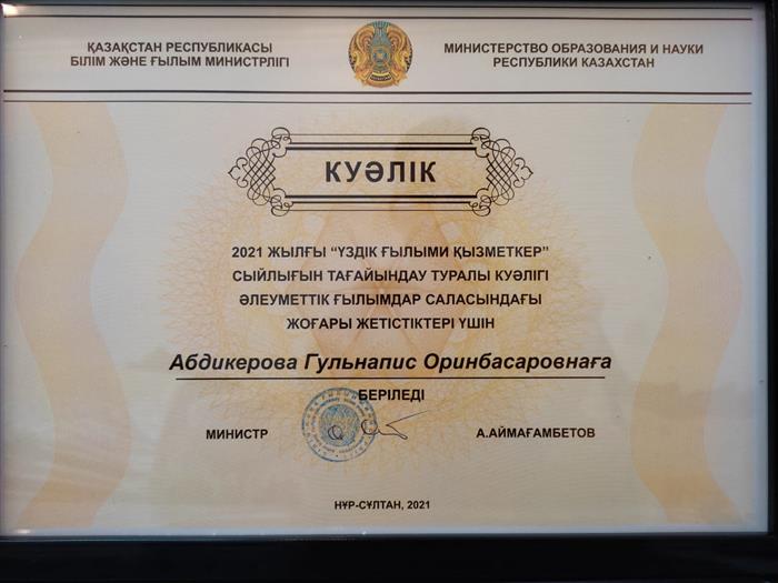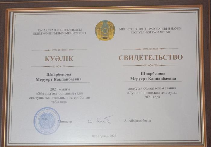 В 2015 году преподаватель кафедры, и доцент М.Маульшариф стала обладателем гранта МОН РК "Лучший преподаватель вуза".
