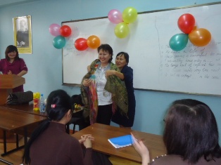 Встреча с актрисой театра им. Г. Мусрепова Султанбердиевой Т.Б., заслуженным деятелем культуры Казахстана.