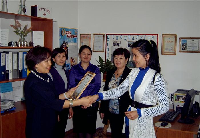Зам.ответственного секретаря приемной комиссии университета Алпысбаева Д.Е. вручила специалистам компьютерного класса Высшей школы экономики и бизнеса благодарственное письмо от руководства за высокие показатели в работе приемной комиссии «Абитуриент – 2010».
