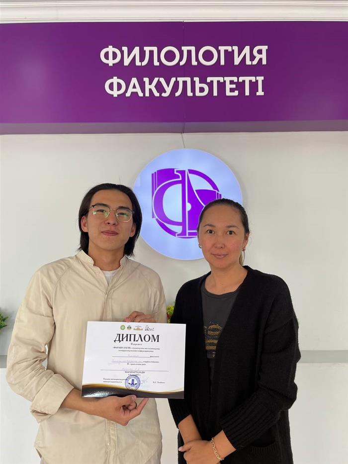 Әбдіқалық Ислам Әбдікәрімұлы, студент специальности «6В02304 – Переводческое дело (западные языки)», был награжден дипломом II степени за выступление с докладом на тему: «Можно ли считать кокни диалектом и как он повлиял на современный английский язык» в секции «Филология, лингводидактика и переводоведение» на VII Международной научной конференции студентов и молодых ученых «ФАРАБИ ӘЛЕМІ». Научный руководитель: Шарипова Гульнара Султанбековна. ript>X-NONEript> |